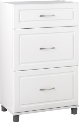 The 24 3 Drawer Base Cabinet features a crisp white finish that creates a refined clean look in your home. Its small size will fit perfectly into the corner of a room or alongside your current storage. Use this piece as a stand-alone item or combine it with additional SystemBuild Kendall storage items to create the perfect storage solution for your home.