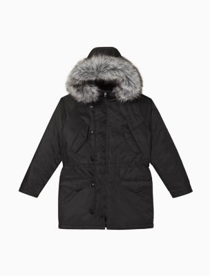 Nylon Faux Fur Hooded Parka Jacket Calvin Klein