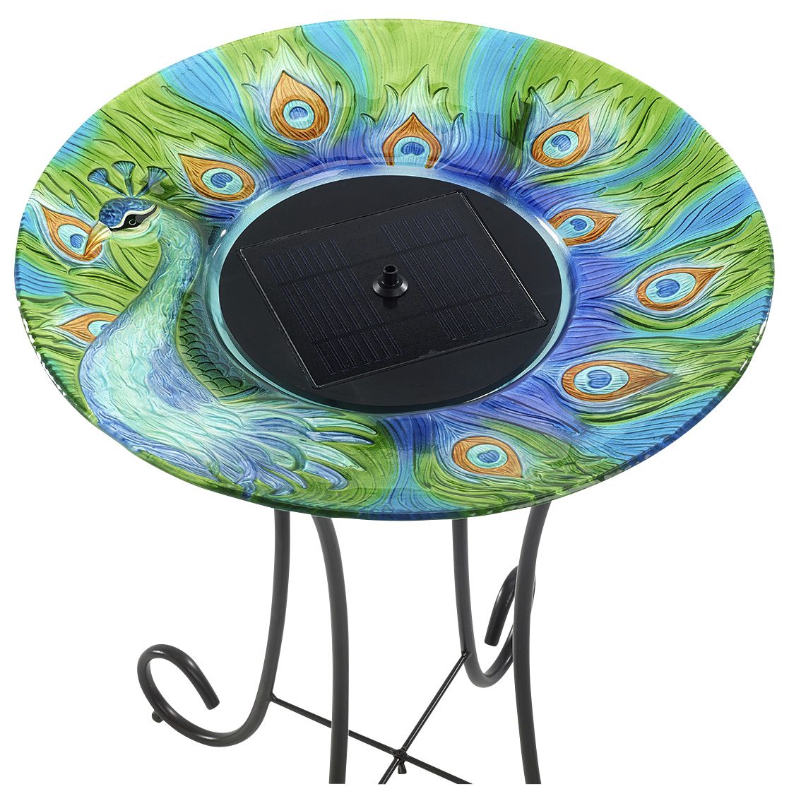 The blue peacock glass is hand painted vibrant and bright so it brings a beautiful pop of color to your garden. Choose from contactless Same Day Delivery Drive Up and more. What material options are available in Smart Solar Bird Bath Fountains.