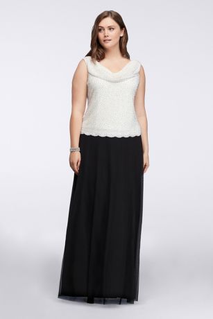 Cachet Plus Caviar Beaded Cowl Neck Gown Plus Dresses Clothes Bridal Party Dresses