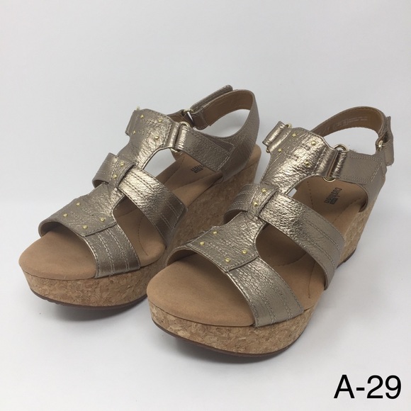 CLARKS Annadel Orchid GOLD Leather Strappy Wedge Sandals Size US WOMEN 95 M NIB Top Rated Seller. Add these summer ready sandals to your wardrobe. Create a sophisticated vibe with the Clarks Annadel Ivory Wedge Sandal.