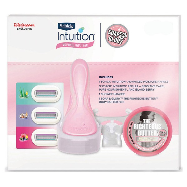 SCHICK INTUITION ADVANCED MOISTURE HOLIDAY GIFT PACK For the woman who likes to keep things simple and uncomplicated the Schick Intuition razor lathers and moisturizes skin during shaving without the need for shave gel. Every holiday season Schick releases a series Holiday Packs featuring some of its favorite razors at a great price and this year there are three awesome sets to choose from. Choose from contactless Same Day Delivery Drive Up and more.