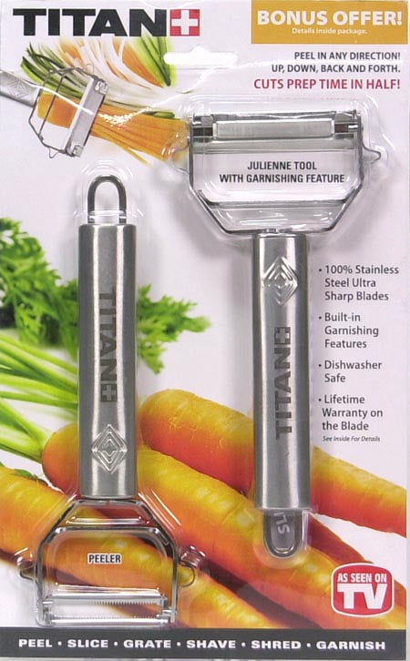 3 offers from 12785. TITAN STAINLESS SERRATED PEELERS SMALL Julian strip LARGE SET OF TWO. Titan Peeler TTPLR Slicer Peeler 47 out of 5 stars 347.