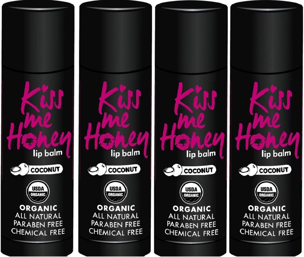 Amazon Com Kiss Me Honey Usda Organic Beeswax Lip Balm Bulk With Shea Butter Coconut Oil And Vitamin E Cruelty Free Coconut 4 Pack Health Personal Care