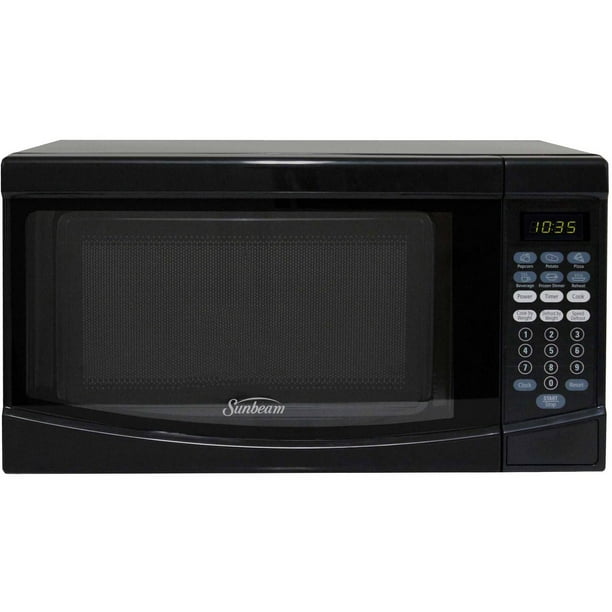 This Sunbeam 07 cu. Sunbeam 07 cu ft Digital Microwave Oven Black. This microwave also includes a child lock cooking complete reminder time defrost auto defrost kitchen timer and a turntable.