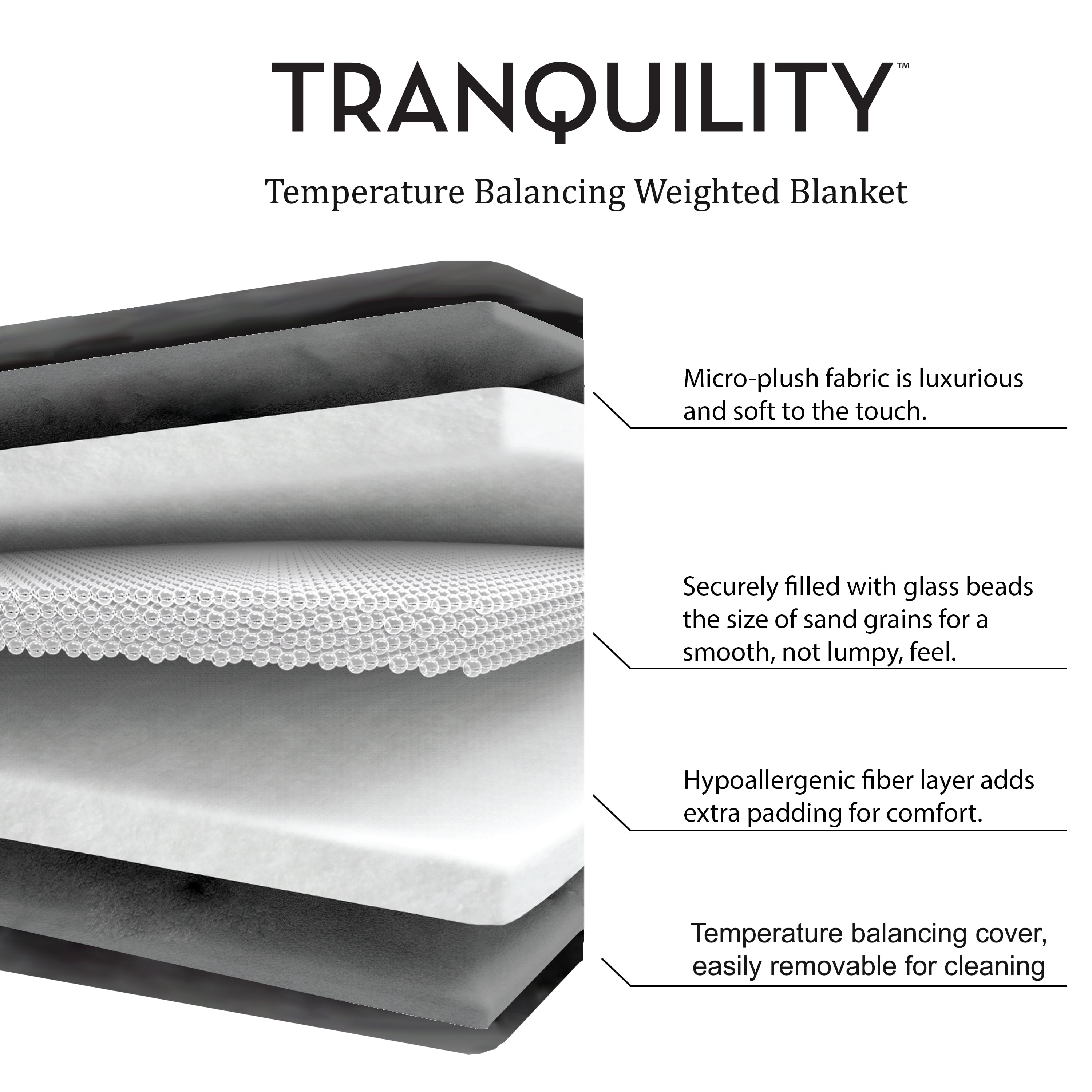The Tranquility Weighted Blanket features temperature balancing technology to keep you cool when its hot and warm when its cold. The Tranquility Weighted Blanket features temperature balancing technology to keep you cool when its hot and warm when its cold. Tranquility Temperature Balancing Weighted Blanket with Washable Cover 12 lbs.