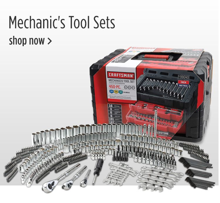 Mechanics Tool Set 5 Sold by Kmart. Craftsman 320-Piece Mechanics Tool Set 999030 46 out of 5 stars based on 66 product ratings 66 16599 New. With its slim head and 3 arc swing you can get into narrow spaces with ease and quickly tighten or loosen a fastener.