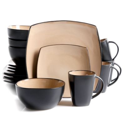 Gibson Kaidence 16 Piece Dinnerware Set In Brown On Sale At Shophq Com In 2021 Stoneware Dinnerware Sets Dinnerware Set Square Dinnerware Set