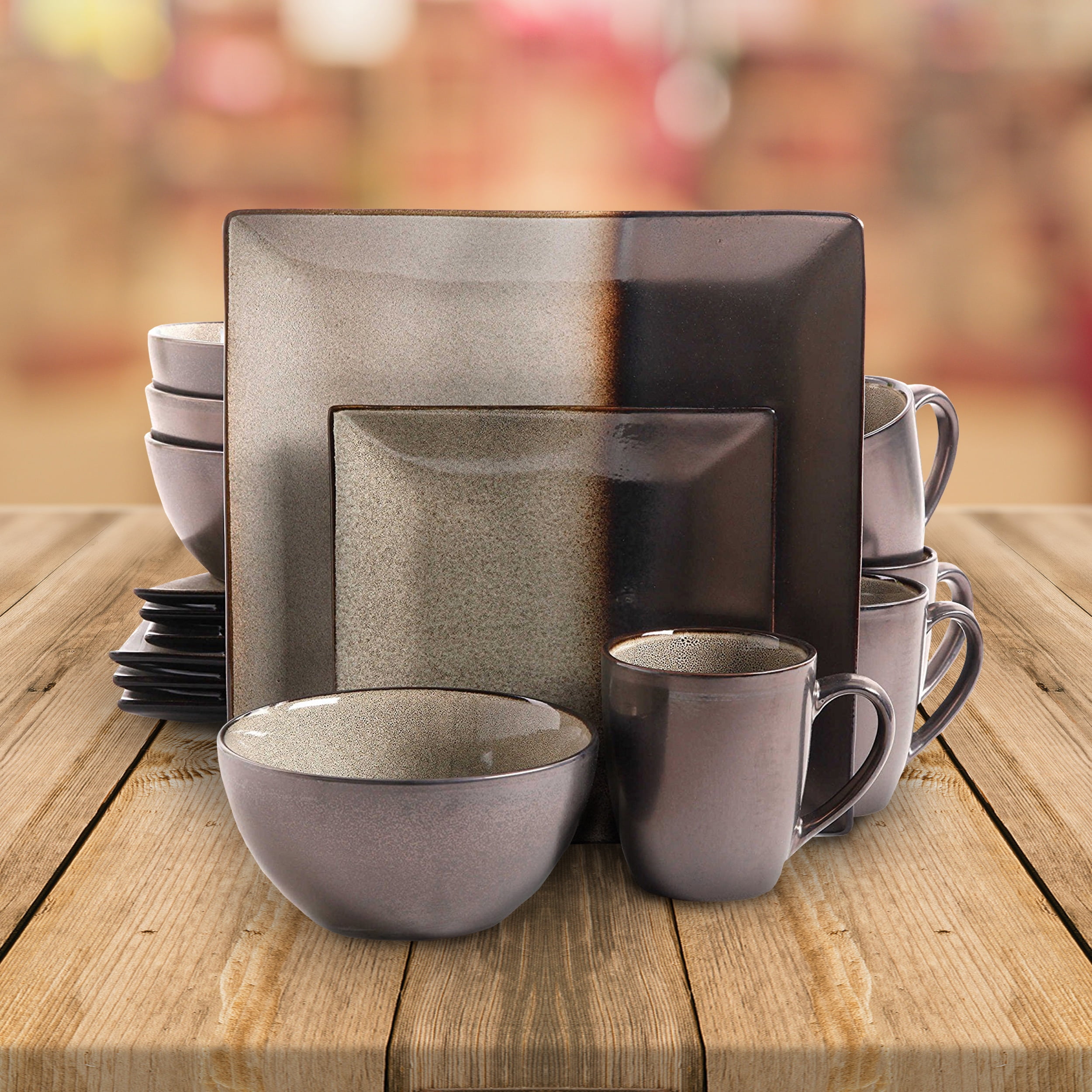 Gibson Elite Autumn Amber 16pc Square Dinnerware Set Black Brown Stoneware For Sale Online Ebay